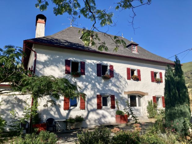 À proximité d’un village, avec une vue dégagée sur la montagne ( au loin la Pierre St Martin, station de sports d’hiver). Une ancienne ferme souletine entièrement restaurée récemment.